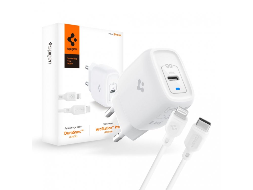 Rychlá nabíječka do sítě pro iPhone - Spigen, PD20W + Lightning kabel