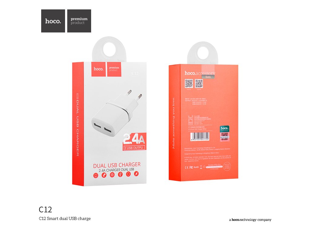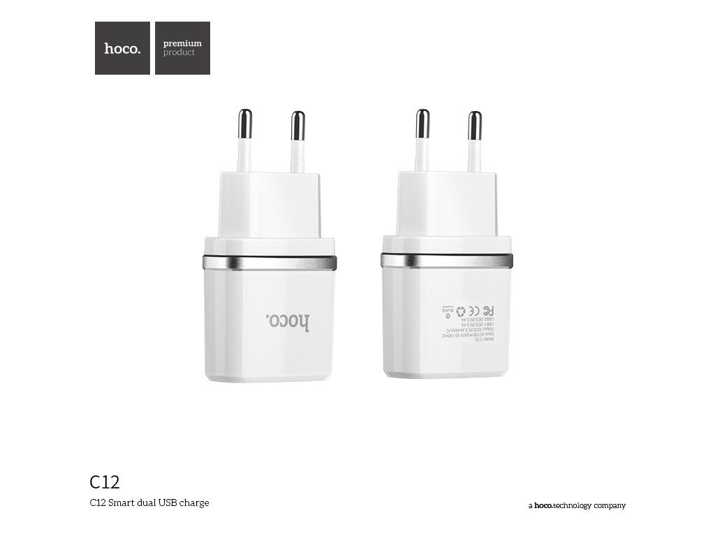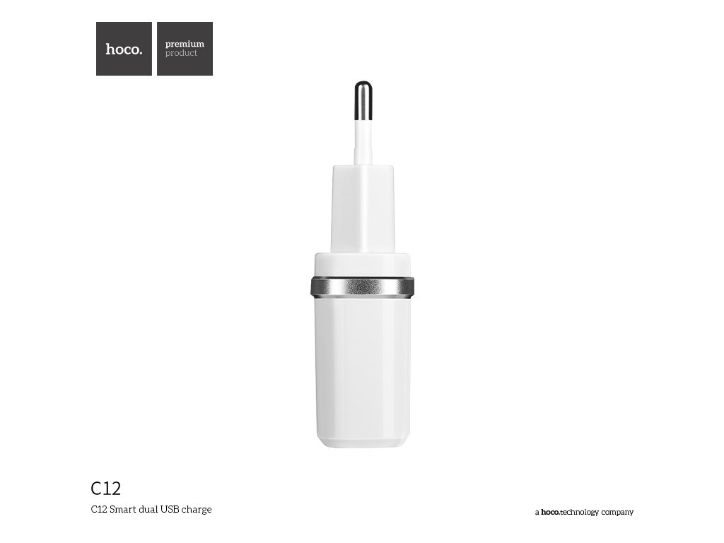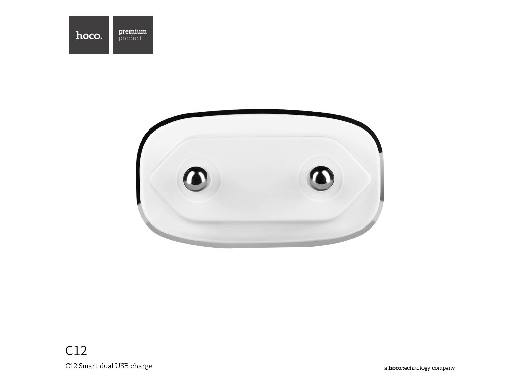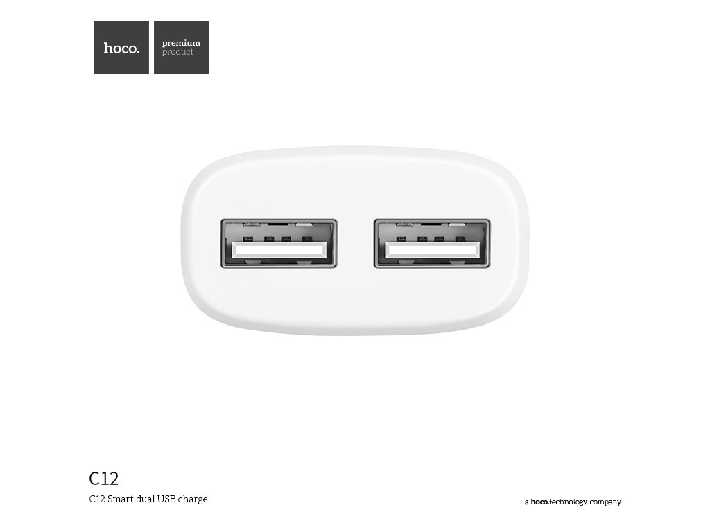 Nabíjecí AC adaptér pro iPhone a iPad - Hoco, C12 Dual 2.4A White