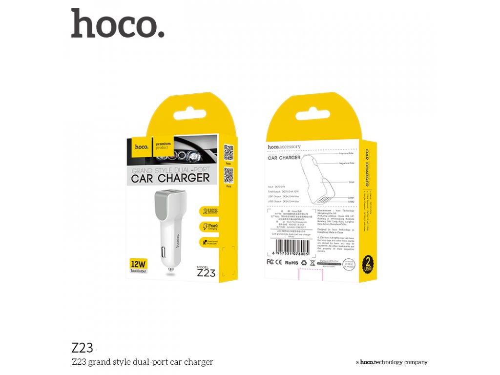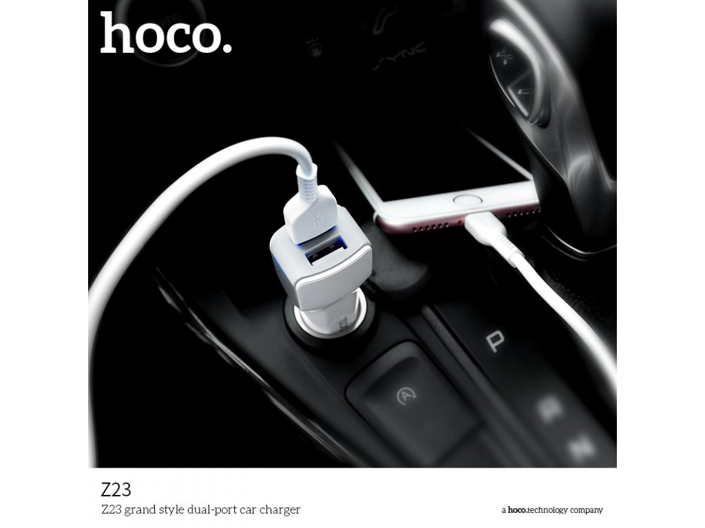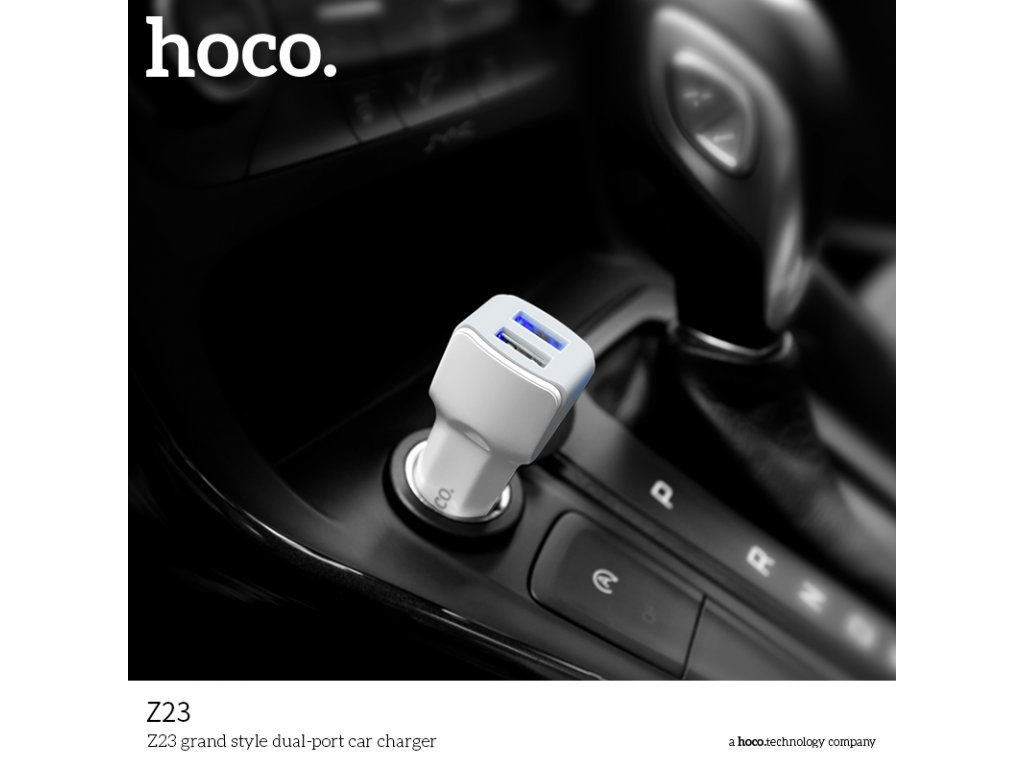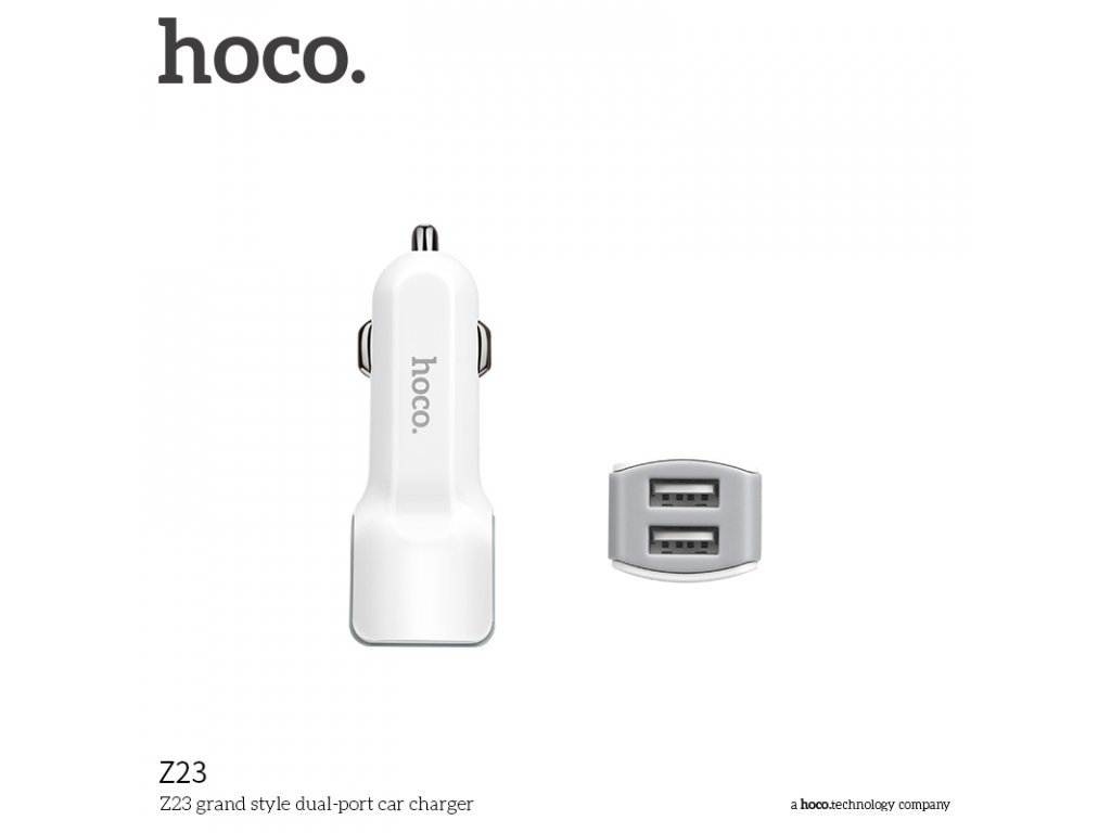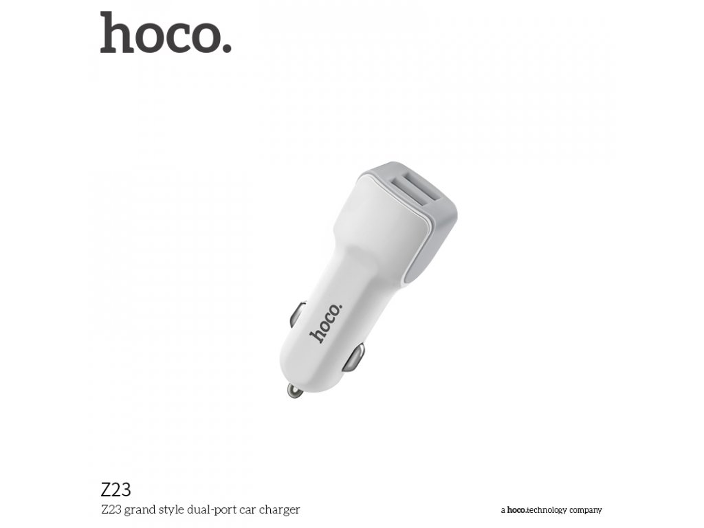 Autonabíječka na zařízení s iOS a Androidem s dvěma USB porty, firmy HOCO, bílé barvy. S pomocí tehle nabíječky se vám už nestane, že se vaše zařízení po cestě autem vybije. Vyrobena z kvalitních materiálů.