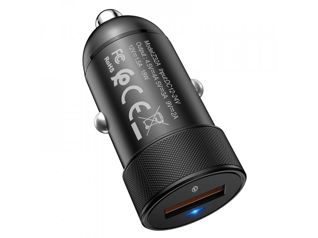 Auto-nabíječka pro iPhone a iPad Hoco Z32A je malé příslušenství, které zastrčíte do cigaretové zásuvky v autě a poskytne vám jeden rychlý USB port pro dobíjení telefonů, tabletů nebo dalších zařízení výkonem až 18 W.