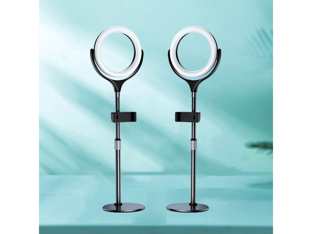 Kruhové LED světlo pro mobil splňuje vše, co budete k nasvícení videí potřebovat. Je umístěno na pevném stojánku, který lze polohovat až do výšky 40 centimetrů. Váha příslušenství je 1,5 kilogramu, takže není moc těžké, ale zároveň bude vždy stabilní.