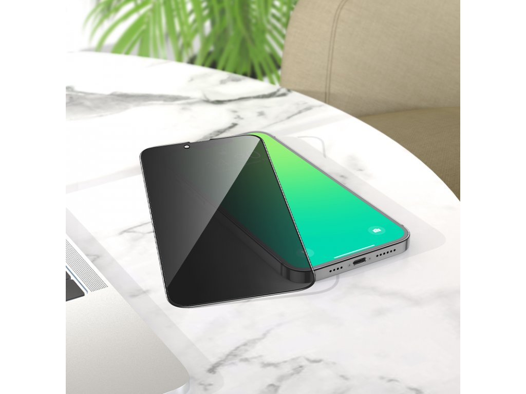 Ochranné tvrzené sklo pro iPhone Hoco A12 Pro je skvělým řešením pro ochranu displeje proti poškrábání. Privacy technologie navíc zabrání zvědavým pohledům ostatních lidí. Pevně sedí na obrazovce a díky malé tloušťce ani nepoznáte, že na displeji vůbec je.