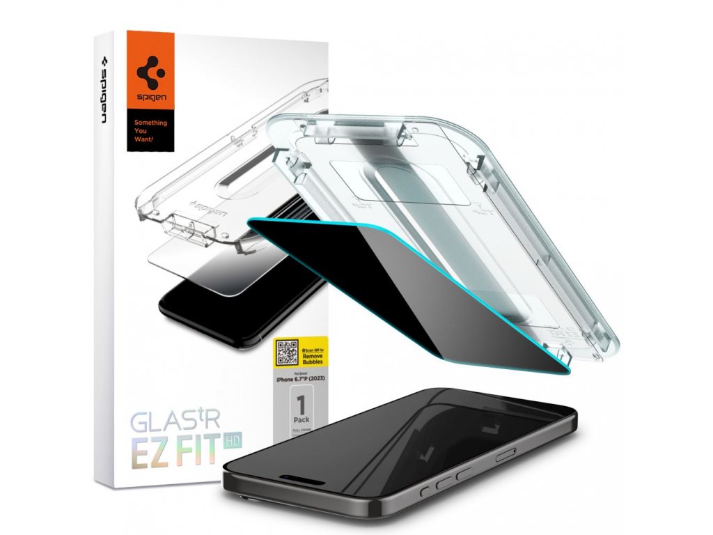 Ochranné tvrzené sklo na iPhone 15 Pro MAX - Spigen, Glas.tR EZ Fit Privacy (1ks s aplikátorem)