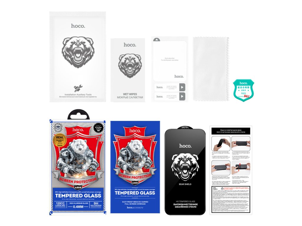 Ochranné tvrzené sklo na iPhone 15 / 16 - Hoco, Bear Shield