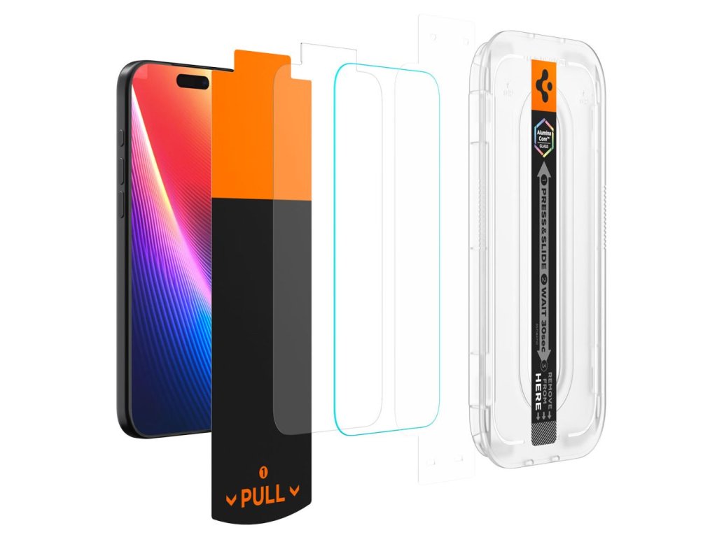 Ochranné tvrzené sklo na iPhone 17 Pro MAX / 16 Pro MAX - Spigen, Glas.tR EZ Fit (1ks s aplikátorem)