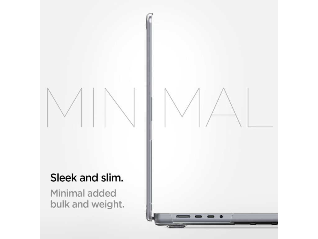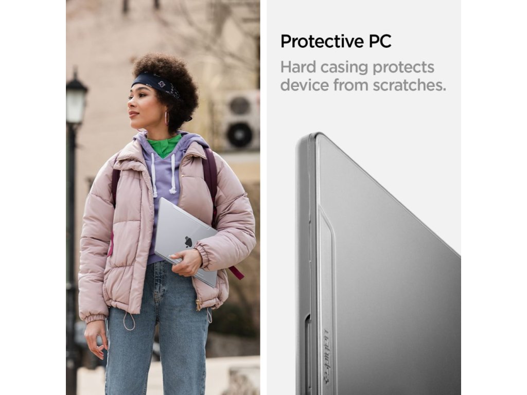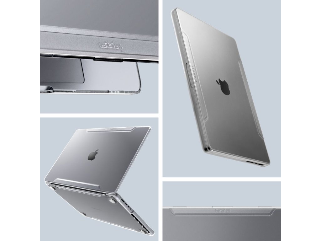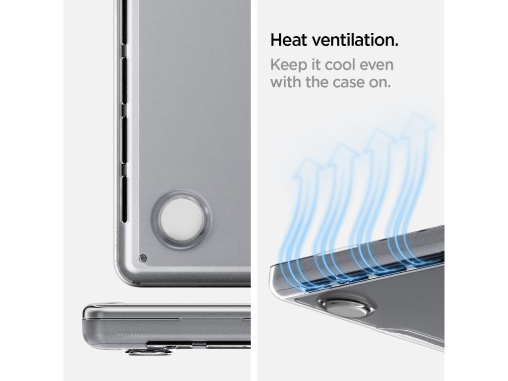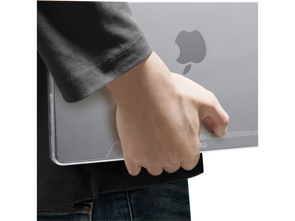 Ochranné pouzdro Spigen Thin Fit Crystal Clear je čirý kryt na 16palcový MacBook Pro. Výborně ochrání zařízení před škrábanci, a navíc nechá vyniknout krásný design samotného počítače. Navíc je důmyslně navrženo tak, aby nebránilo odvodu tepla ven z počítače a všechny porty zůstávají odkryté.