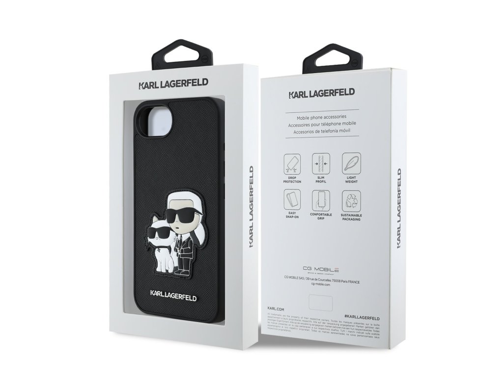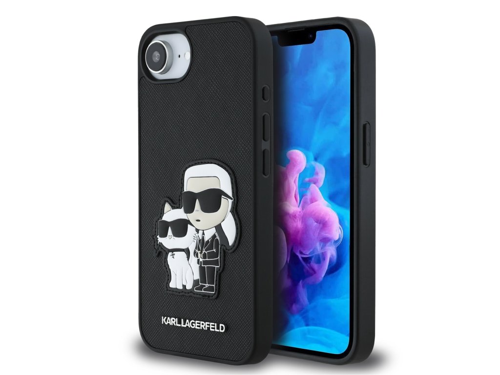 Ochranný kryt na iPhone 16e - Karl Lagerfeld, Saffiano Karl and Choupette Black