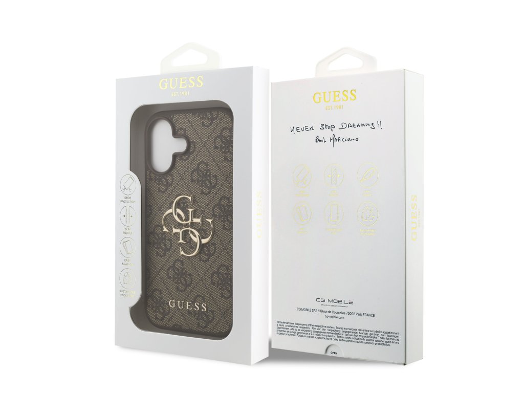 Prémiový zadní kryt Guess PU 4G Metal Logo se vyznačuje elegantním, charakteristickým 4G vzorem, doplněným o logo GUESS.