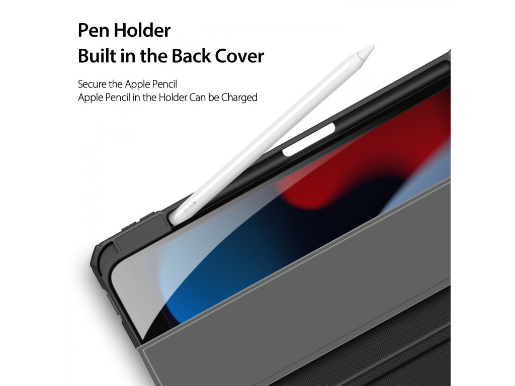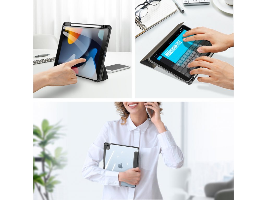 Pouzdro pro iPad Duxducis Toby zvládne zastat několik funkcí najednou. Chrání celé tělo iPadu z přední i zadní části a vyniká šikovnými vychytávkami jako jsou držák tužky Apple Pencil, inteligentní odemykání a zamykání displeje, nebo funkce stojánku.