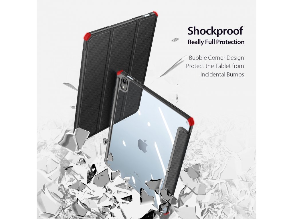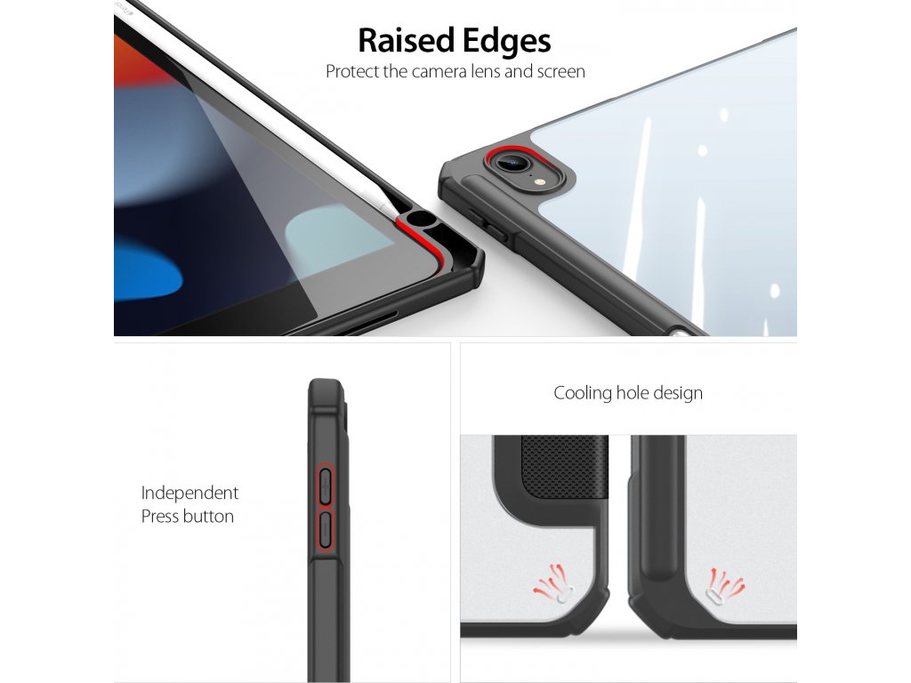 Ochranný kryt na iPad je opravdu odolný. Vyztužené rohy brání rozbití při pádech. Zadní část krytu je vyrobena z odolného plastu, který je velmi flexibilní a dokáže chytře rozvádět teplo tak, aby se zařízení v obalu nepřehřívalo. V rozích jsou chytře provrtány nenápadné otvory pro ještě lepší odvod tepla. Nemusíte se ani bát, že by se v krytu poškrábal zadní fotoaparát, protože obal přečnívá nad čočku a chrání ji. Navíc díky průhledné zadní části můžete nadále dávat na odiv krásu Apple tabletu.