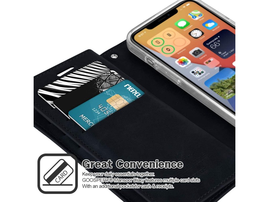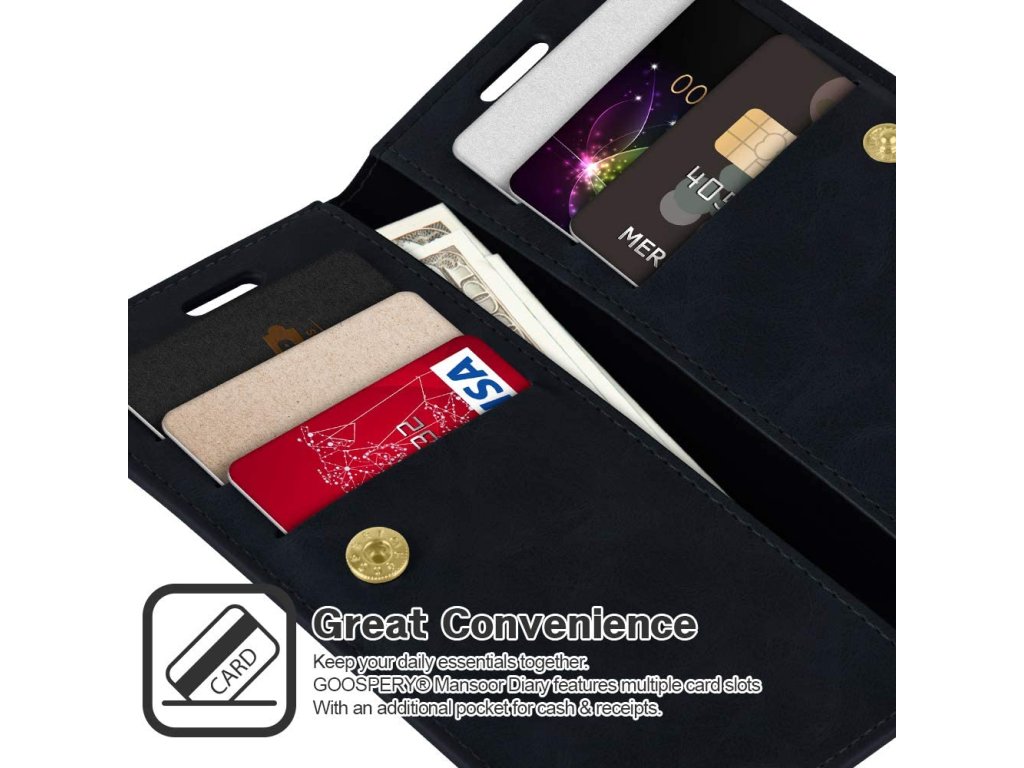 Ochranné pouzdro na iPhone Mercury Mansoor Diary je zavírací elegantní kryt pro Apple telefony. Příjemný obal plní kromě ochranné funkce také použití jako peněženky, protože má přihrádky pro uložení drobné hotovosti nebo platebních karet.