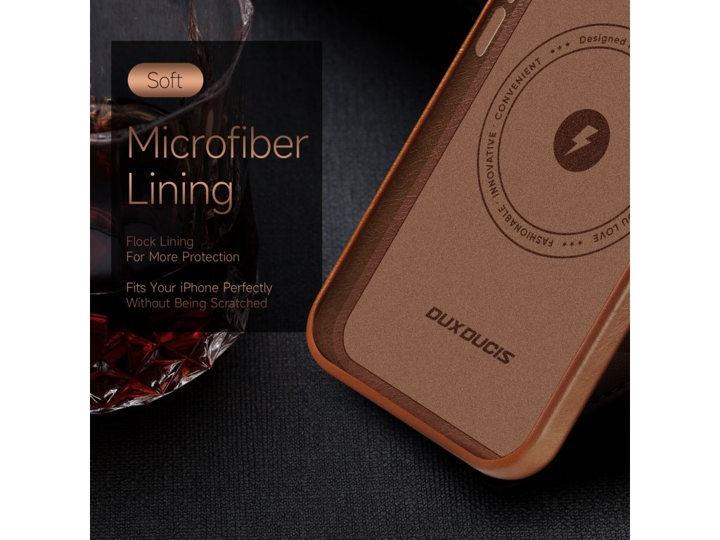 Kožený kryt na iPhone DuxDucis Naples splňuje nejvyšší nároky na vysokou eleganci a přidává MagSafe funkci, díky které nabijete rychle a magneticky novější iPhony.
