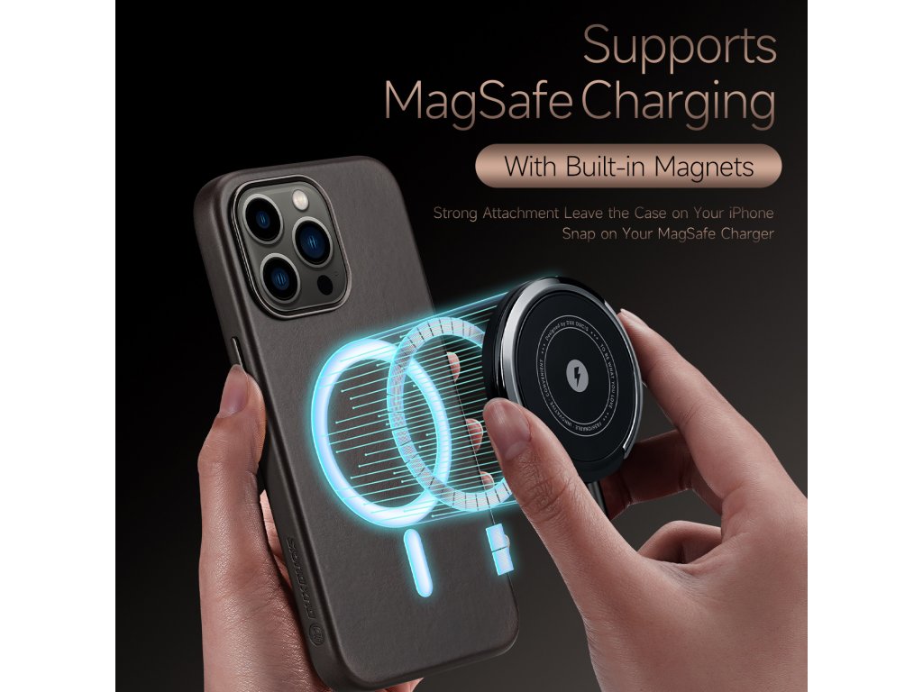 Kožený kryt na iPhone DuxDucis Naples splňuje nejvyšší nároky na vysokou eleganci a přidává MagSafe funkci, díky které nabijete rychle a magneticky novější iPhony.