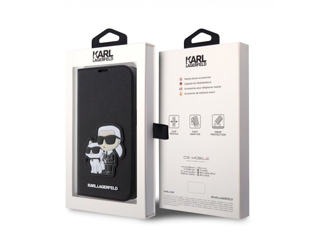 Ochranné pouzdro pro iPhone 13 Pro MAX - Karl Lagerfeld, Saffiano Karl and Choupette NFT Book Black