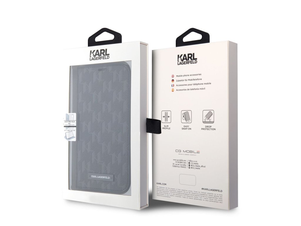 Ochranné pouzdro pro iPhone 13 - Karl Lagerfeld, Saffiano Monogram Book Black