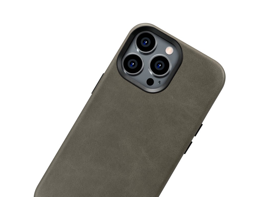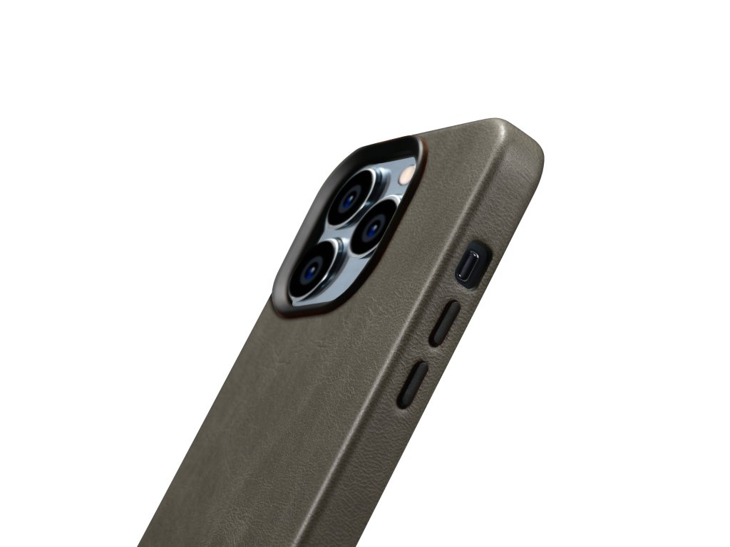 Kožený obal na iPhone 14 Pro - iCarer, OilWax MagSafe Gray