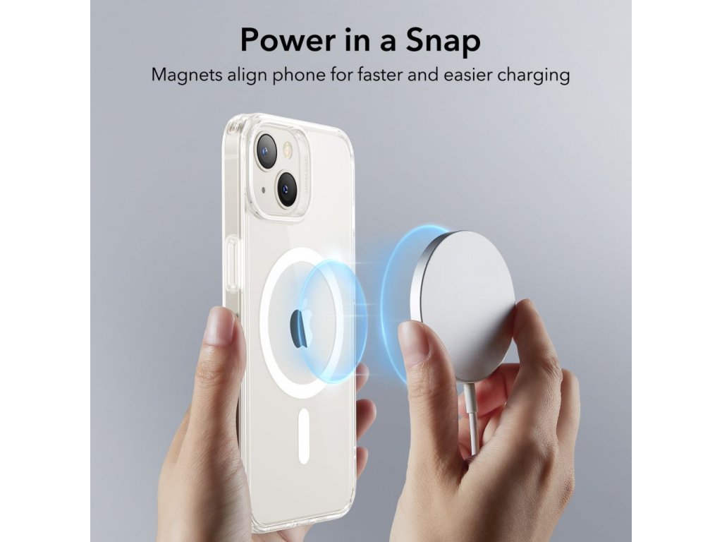 Ochranný kryt pro iPhone ESR Classic Hybrid HaloLock Clear je průhledným krytem, který telefon udrží v bezpečí. Příjemný obal poskytuje velmi dobrou ochranu a nechává vyniknout design samotného telefonu. Kromě zad ochrání i objektivy fotoaparátu a displej mobilu. Navíc podporuje MagSafe, takže můžete iPhone nabíjet magneticky i v krytu.