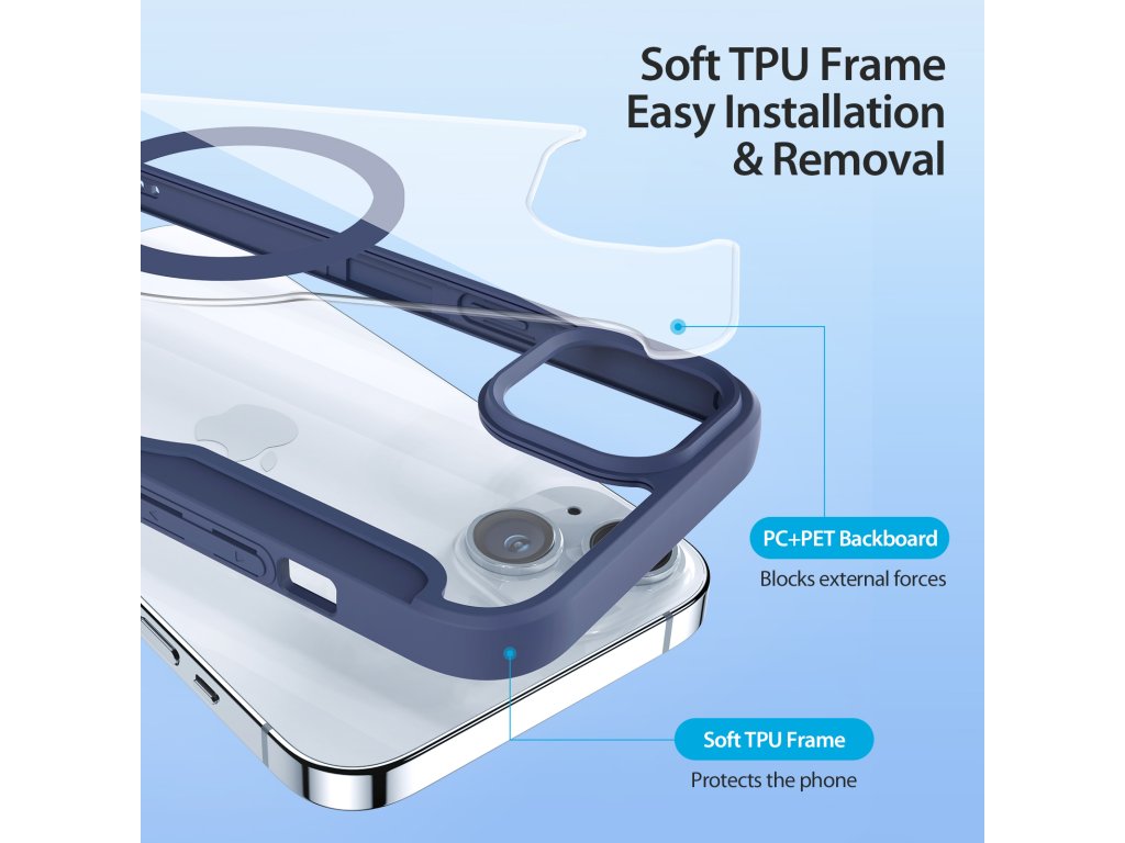 MagSafe pouzdro je vybavené 38 magnety, které jsou seskládány do kruhu. Díky tomu můžete telefon i v pouzdru nabíjet MagSafe nabíječkou, využívat MagSafe powerbanku nebo mít na zádech magneticky připevněnou MagSafe peněženku.