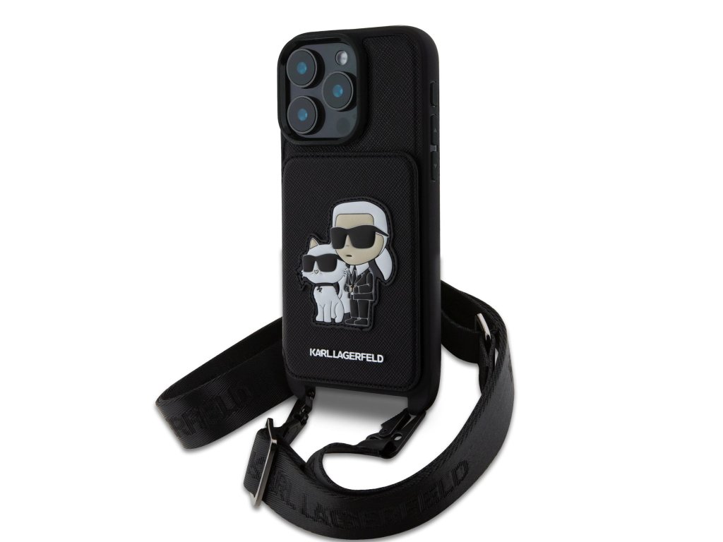 Ochranný kryt na iPhone 16 Pro MAX - Karl Lagerfeld, Saffiano Crossbody Karl and Choupette Black