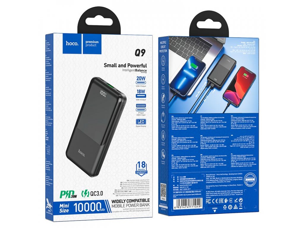 Externí baterie / powerbanka - HOCO, Q9 Shell PD20W+QC3.0 10000mAh Black