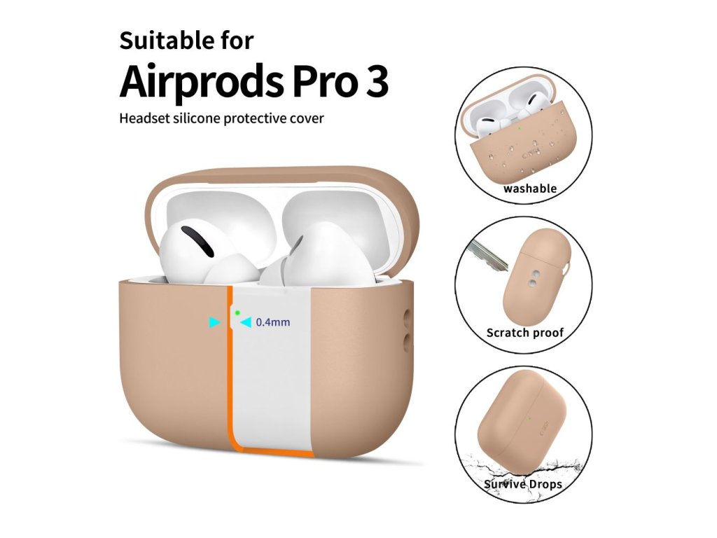 Pouzdro s poutkem na sluchátka AirPods Pro 3 - Tech-Protect, Silicone Caffe Latte
