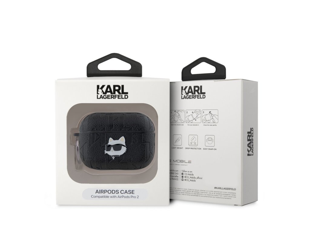 Pouzdro na sluchátka AirPods Pro 1/2 - Karl Lagerfeld, PU Embossed Choupette Head Black