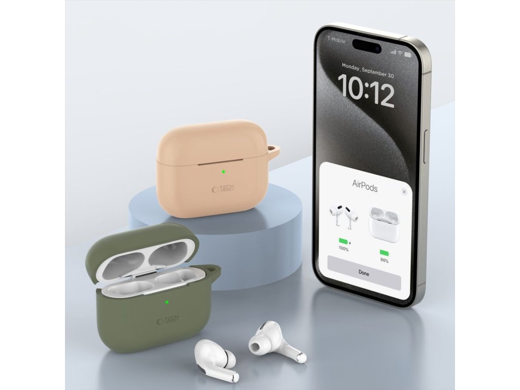 Pouzdro s karabinou na sluchátka AirPods Pro 1/2 - Tech-Protect, Silicone Hook Olive Green