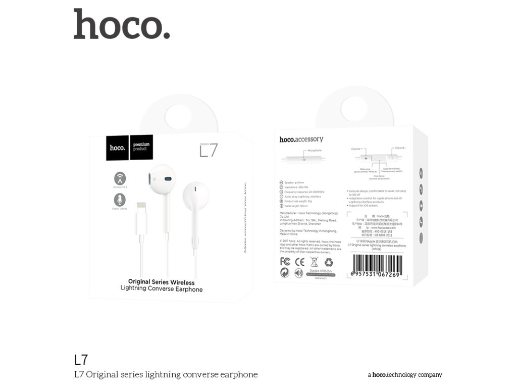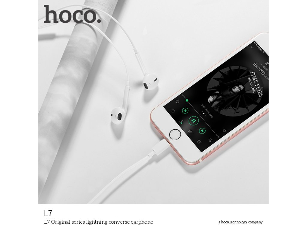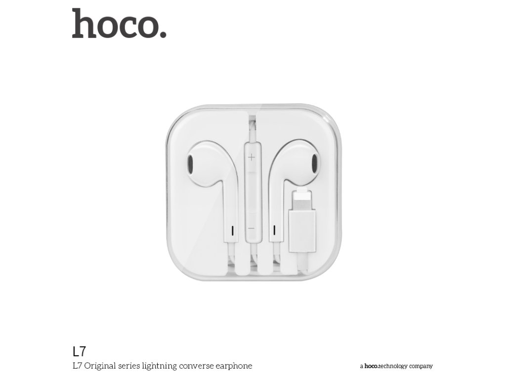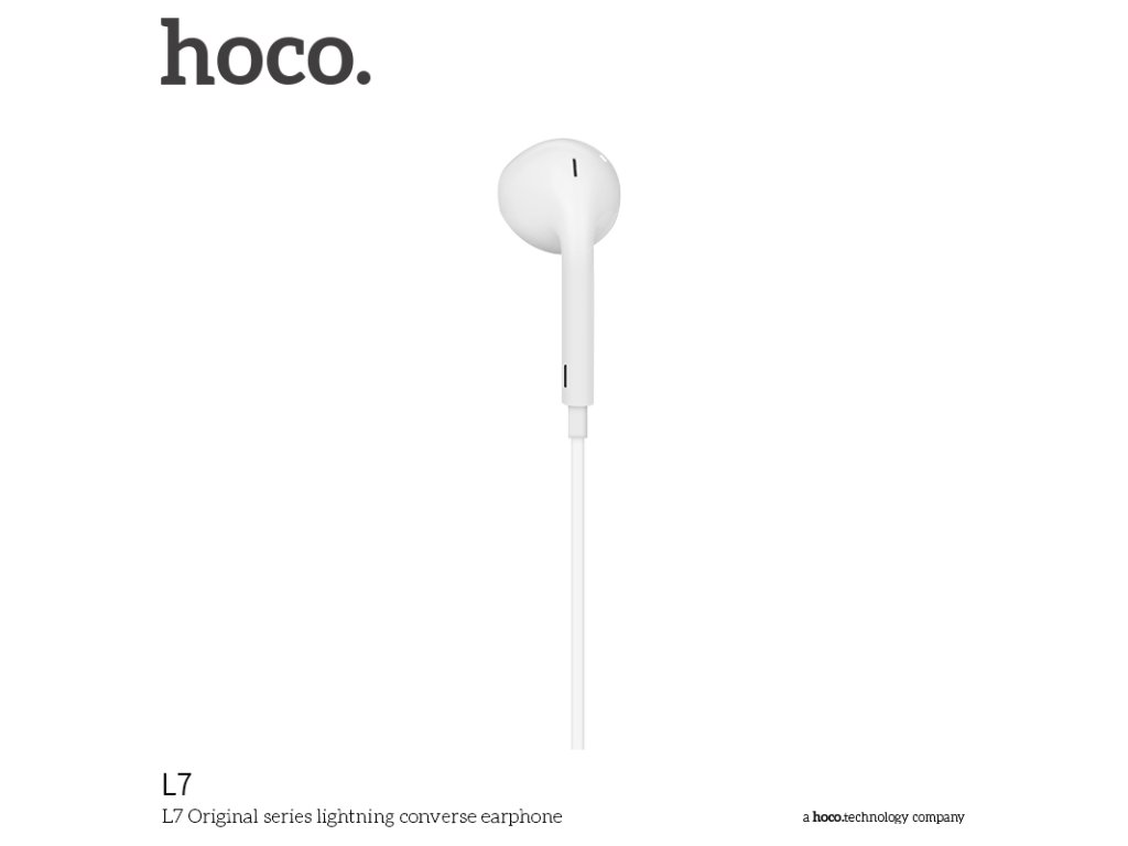 Sluchátka na iPhone a iPad značky HOCO s konektorem lighting, bílé barvy. Vyrobeny ve stylu Apple s výbornou kvalitou zvuku. Dá se používat jak na poslouchání hudby, tak na telefonování, přitom dobře drží a nikdy nevypadávají.