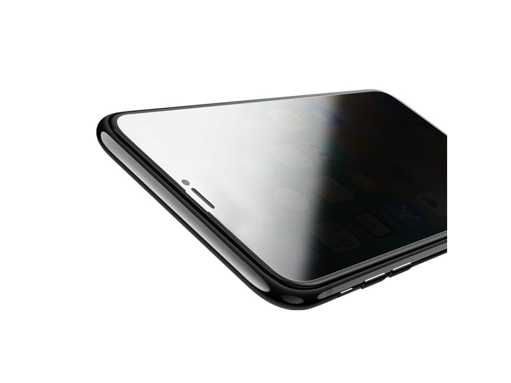 Ochranné sklo na iPhone XS MAX / 11 Pro MAX je obdařeno šikovnou vychytávkou v podobě Anti-Spy ochrany. Ta funguje ve všech směrech a abyste viděli na displej, je potřeba se na telefon dívat zpříma. Jakmile se někdo bude dívat ze strany nebo třeba shora, uvidí jen černou obrazovku.