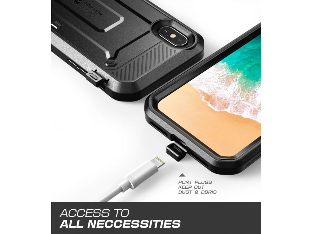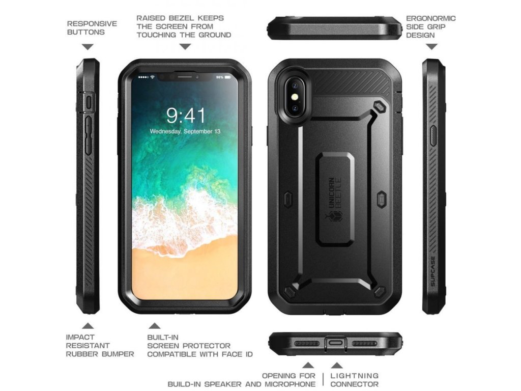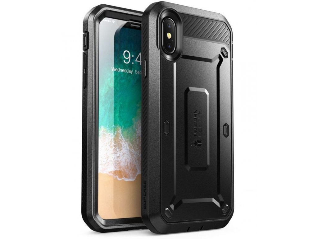 Ochranný kryt pro iPhone X/XS Supcase Unicorn Beetle Pro kombinuje pouzdro s ochranným sklem. Zadní část je pak velmi odolná a můžete k ní připojit i šikovný držák za opasek.