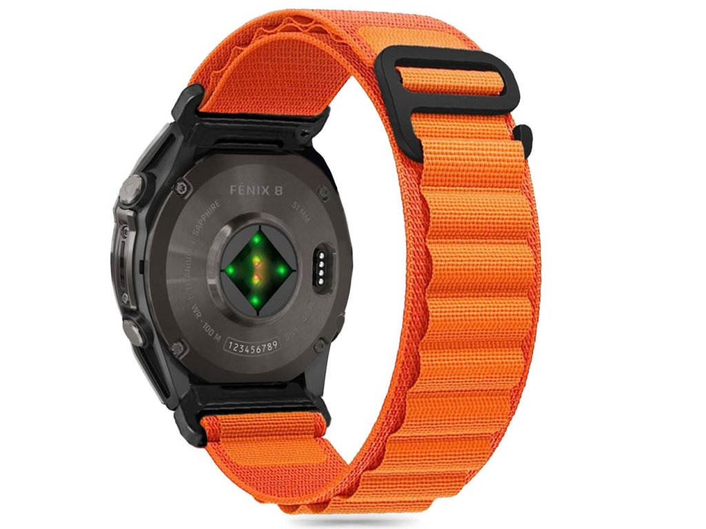 Řemínek pro Garmin Fenix 5 / 6 / 6 PRO / 7 / 8 (47mm) / E - Tech-Protect, Nylon Pro Orange je odolný a komfortní nylonový pás určený pro sportovní i každodenní nošení. Díky své pevnosti a pružnosti poskytuje bezpečné uchycení na zápěstí, zatímco jeho výrazná oranžová barva dodává stylový a dynamický vzhled. Snadno se nasazuje a nastavuje, a je ideální volbou pro aktivní uživatele, kteří chtějí spojit funkčnost s moderním designem a dlouhou životností.