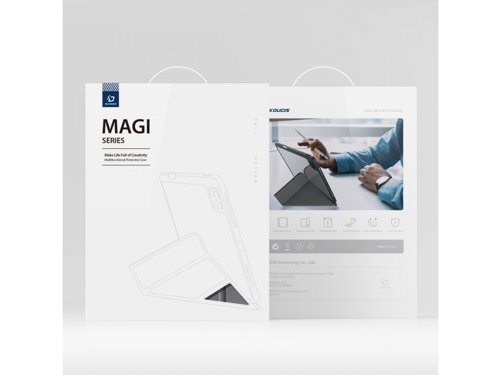 Pouzdro pro iPad DuxDucis Magi už svým názvem napovídá, že nabídne až skutečně magické funkce. Kryje zadní část i přední displej. Nabízí několik šikovných vylepšení jako je možnost stojánku nebo připevnění Apple Pencil a vypadá velmi reprezentativně.