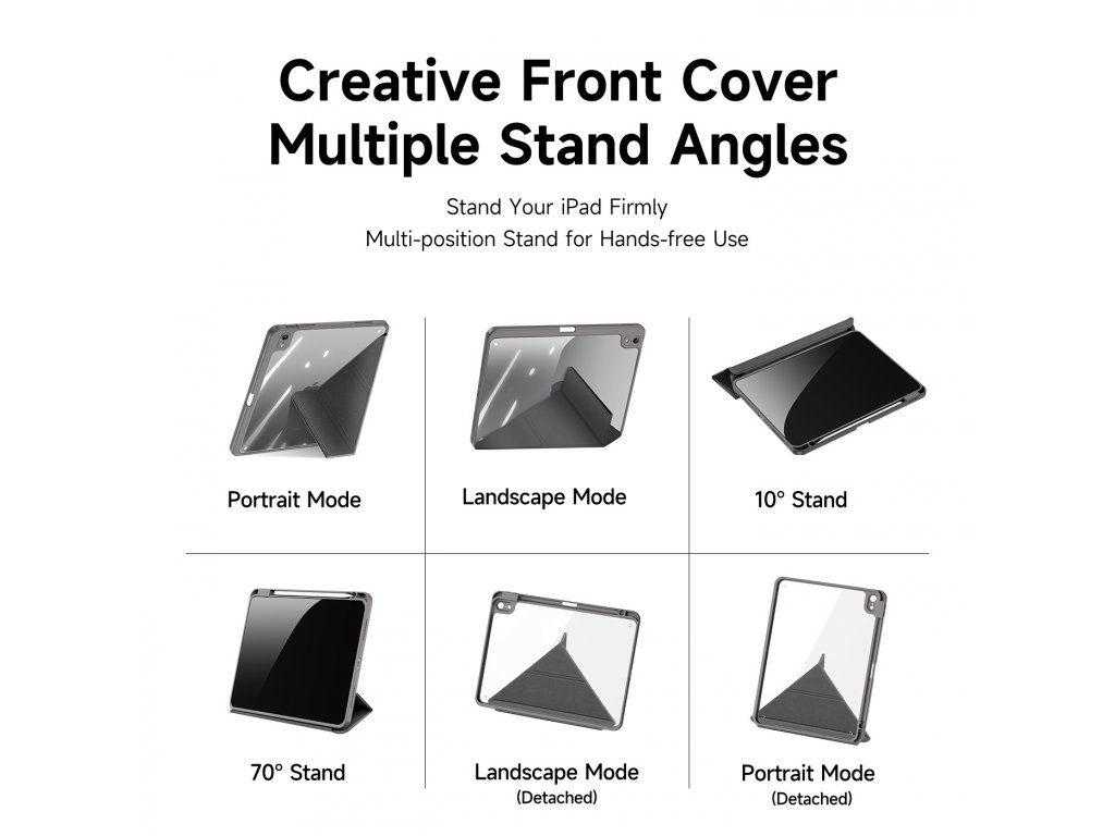 Kryt pro iPad a jeho vnitřní plocha zavírací části je tvořena jemným mikrovláknem, takže nepoškodí displej, a naopak ho dokáže i čistit. Přední část je tvořena z několika částí, což umožňuje spoustu variant použití jako stojánku. Můžete tak iPad postavit na výšku i na šířku a uzpůsobit si přesně úhel náklonu.