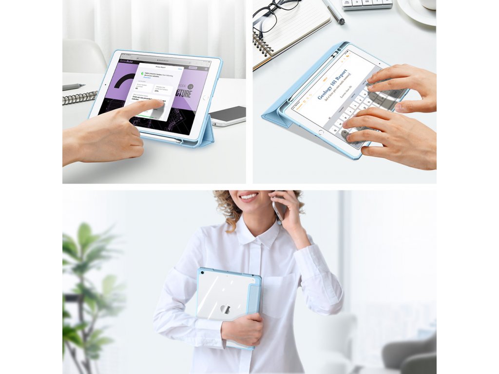 Pouzdro pro iPad Duxducis Toby zvládne zastat několik funkcí najednou. Chrání celé tělo iPadu z přední i zadní části a vyniká šikovnými vychytávkami jako jsou držák tužky Apple Pencil, inteligentní odemykání a zamykání displeje, nebo funkce stojánku.