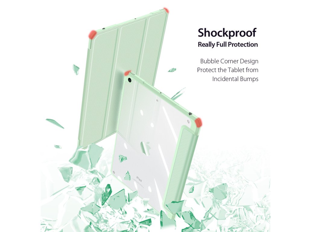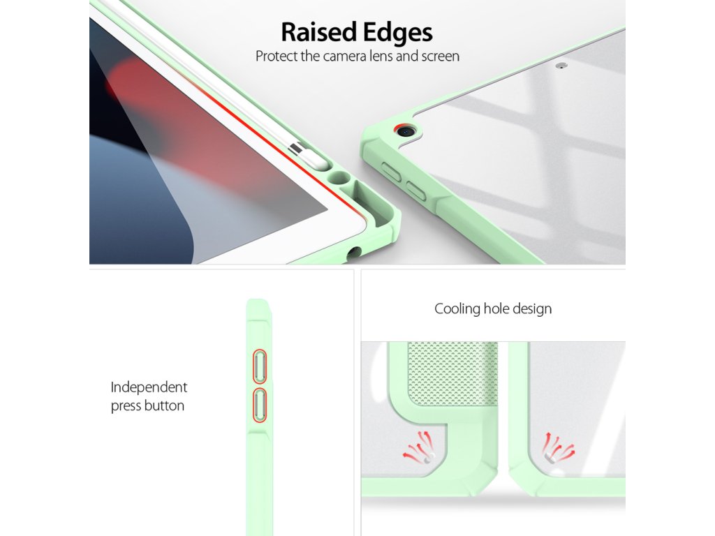 Ochranný kryt na iPad je opravdu odolný. Vyztužené rohy brání rozbití při pádech. Zadní část krytu je vyrobena z odolného plastu, který je velmi flexibilní a dokáže chytře rozvádět teplo tak, aby se zařízení v obalu nepřehřívalo. V rozích jsou chytře provrtány nenápadné otvory pro ještě lepší odvod tepla. Nemusíte se ani bát, že by se v krytu poškrábal zadní fotoaparát, protože obal přečnívá nad čočku a chrání ji. Navíc díky průhledné zadní části můžete nadále dávat na odiv krásu Apple tabletu.