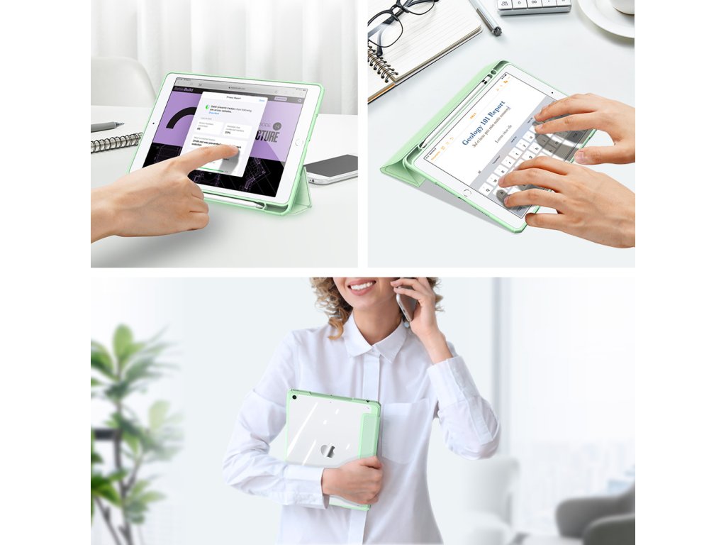 Pouzdro pro iPad Duxducis Toby zvládne zastat několik funkcí najednou. Chrání celé tělo iPadu z přední i zadní části a vyniká šikovnými vychytávkami jako jsou držák tužky Apple Pencil, inteligentní odemykání a zamykání displeje, nebo funkce stojánku.
