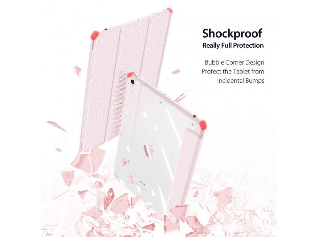 Ochranný kryt na iPad je opravdu odolný. Vyztužené rohy brání rozbití při pádech. Zadní část krytu je vyrobena z odolného plastu, který je velmi flexibilní a dokáže chytře rozvádět teplo tak, aby se zařízení v obalu nepřehřívalo. V rozích jsou chytře provrtány nenápadné otvory pro ještě lepší odvod tepla. Nemusíte se ani bát, že by se v krytu poškrábal zadní fotoaparát, protože obal přečnívá nad čočku a chrání ji. Navíc díky průhledné zadní části můžete nadále dávat na odiv krásu Apple tabletu.