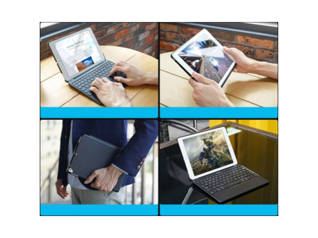 Klávesnice pro iPad 2017, iPad 2018 nebo iPad Air 1 Duxducis je multifunkčním zařízením, které zastane hned několik funkcí. Slouží primárně jako klávesnice, ale perfektně splní svůj účel i jako ochranné pouzdro, držák na Apple Pencil, nebo stojánek pro iPad.