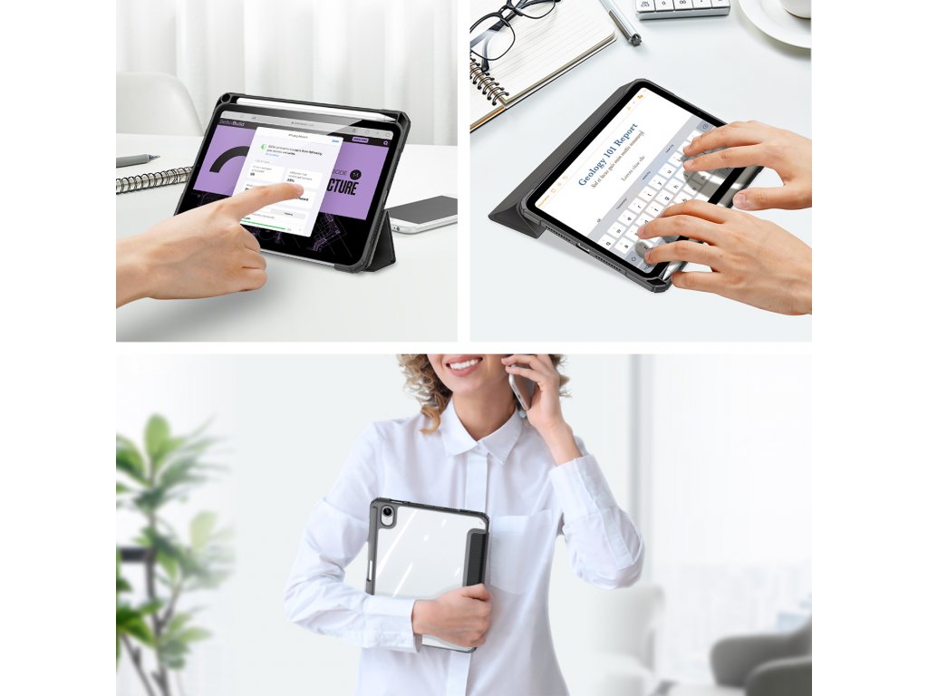 Pouzdro pro iPad Duxducis Toby zvládne zastat několik funkcí najednou. Chrání celé tělo iPadu z přední i zadní části a vyniká šikovnými vychytávkami jako jsou držák tužky Apple Pencil, inteligentní odemykání a zamykání displeje, nebo funkce stojánku.