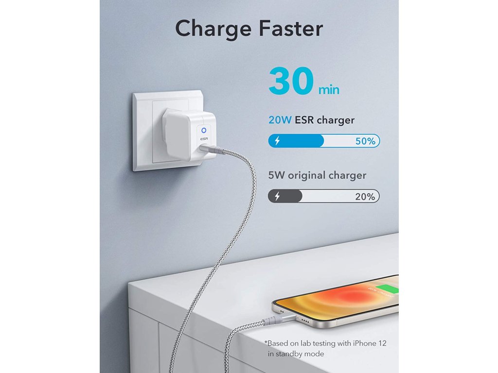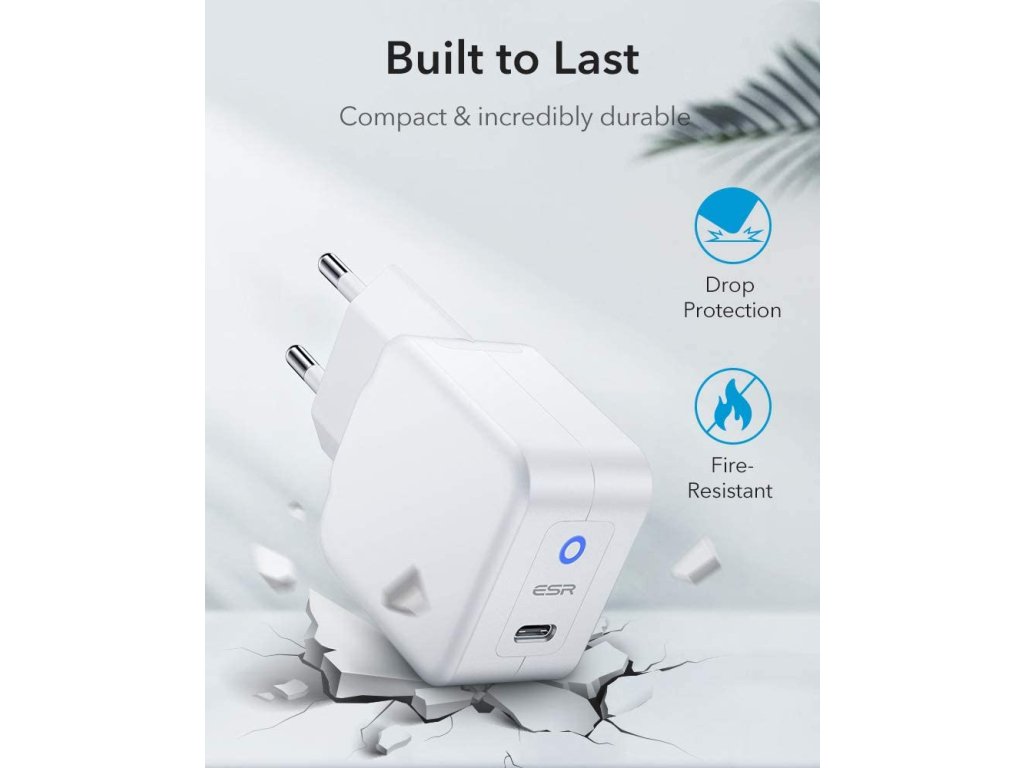 Nabíjecí adaptér USB-C ESR je malým a rychlým pomocníkem pro nabíjení moderních telefonů. Podporuje Power Delivery s nabíjecím výkonem až 20 W. Je přímo stvořený pro cestování, jeho váha činí pouhých 60 gramů.