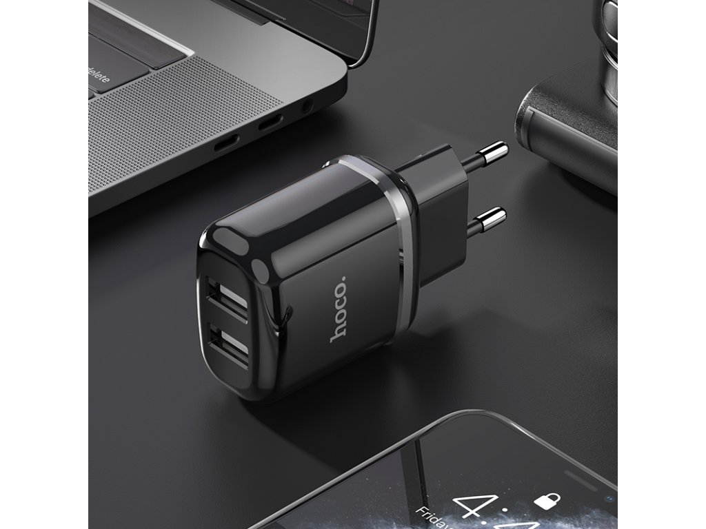 Nabíjecí AC adaptér pro iPhone a iPad Hoco N4 je určen pro nabíjení až 2 zařízení zároveň.