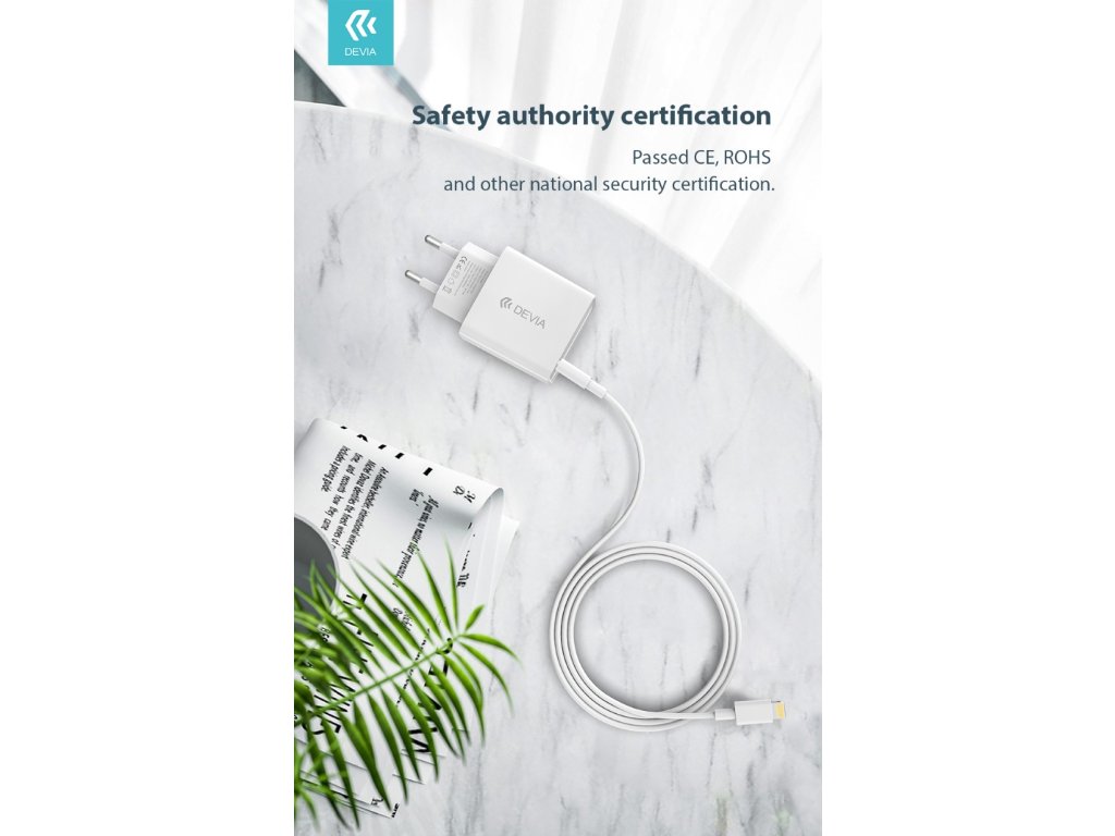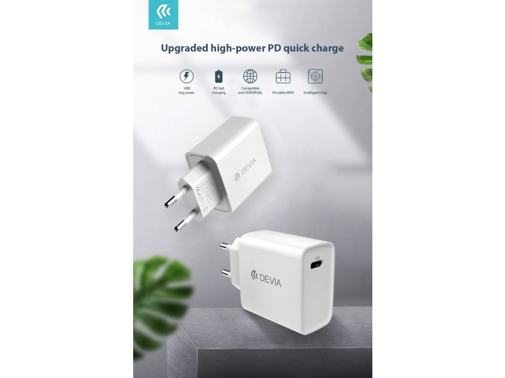 Rychlá nabíječka do sítě pro iPhone a iPad Devia Smart Quick Charger podporuje funkci Power Delivery pro bleskurychlé dobíjení Apple produktů a součástí je také nabíjecí Lightning kabel.