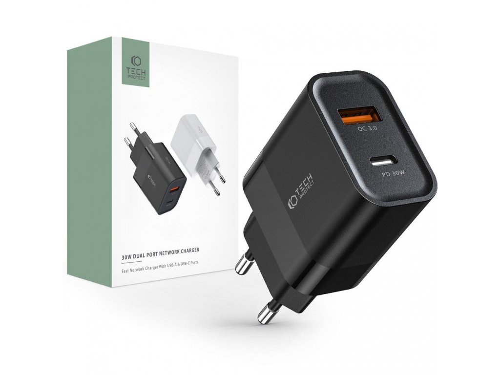 Rychlá nabíječka do sítě - Tech-Protect, PD30W/QC3.0 Black