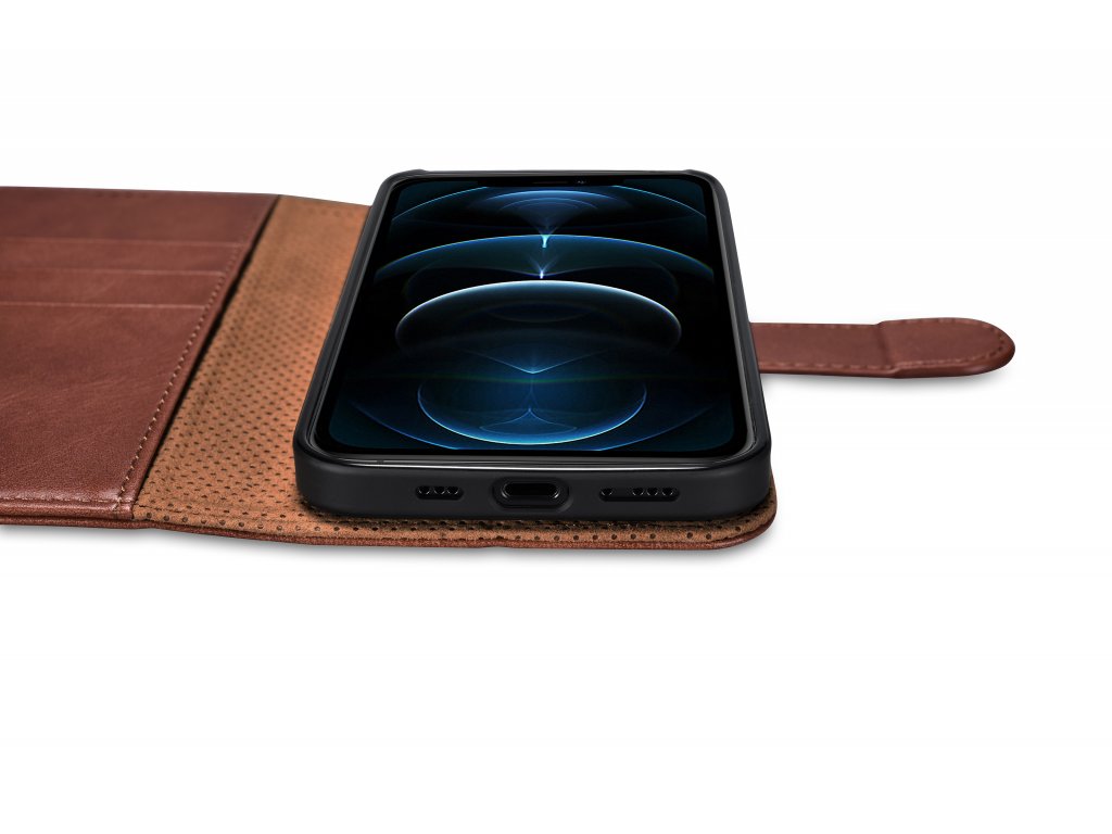 Pouzdro pro iPhone 12 / 12 Pro - iCarer, Classic Wallet Brown