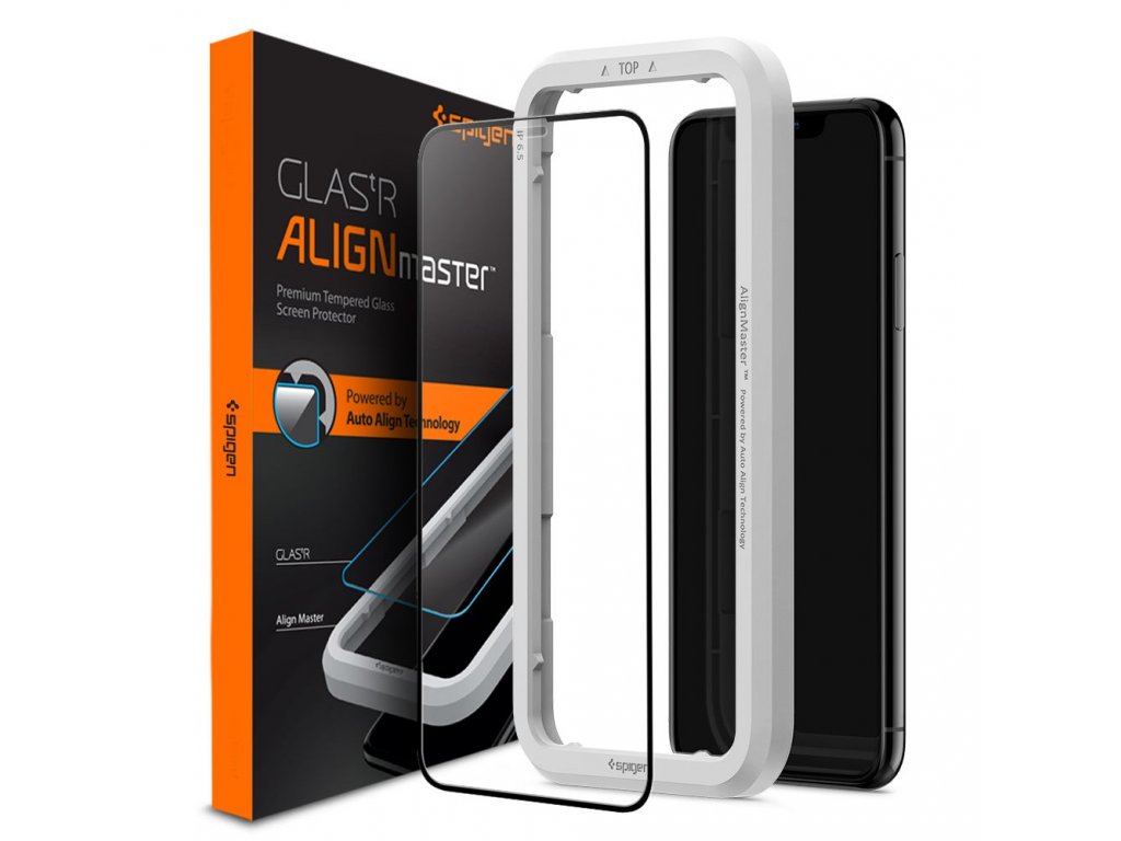 Ochranné tvrzené sklo pro iPhone XR / 11 - Spigen, AlignMaster FC (s aplikátorem)
