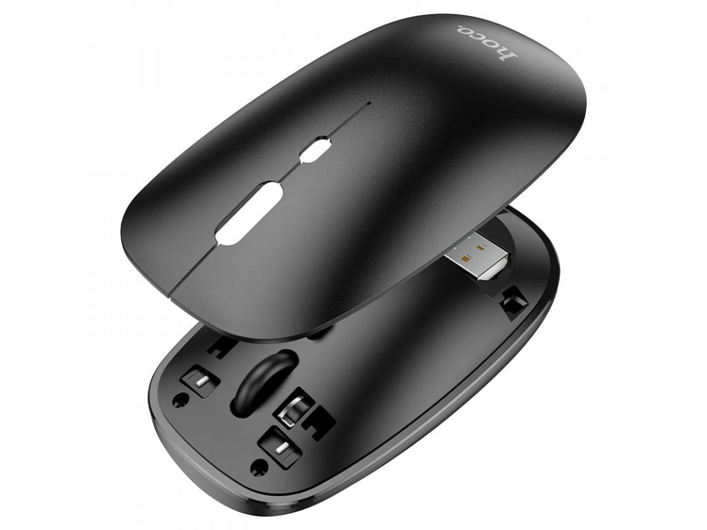 Bezdrátová myš Hoco GM15 je levným a praktickým doplňkem k vašemu počítači. Napájení je zajištěno jednou AA baterií a uvnitř se nachází přijímač signálu, který zapojíte do USB počítače. Druhou možností připojení je Bluetooth, které využijete například u Maců. Nízká váha, odolný ABS plast a DPI až 1600 jsou dalšími výhodami, které oceníte.