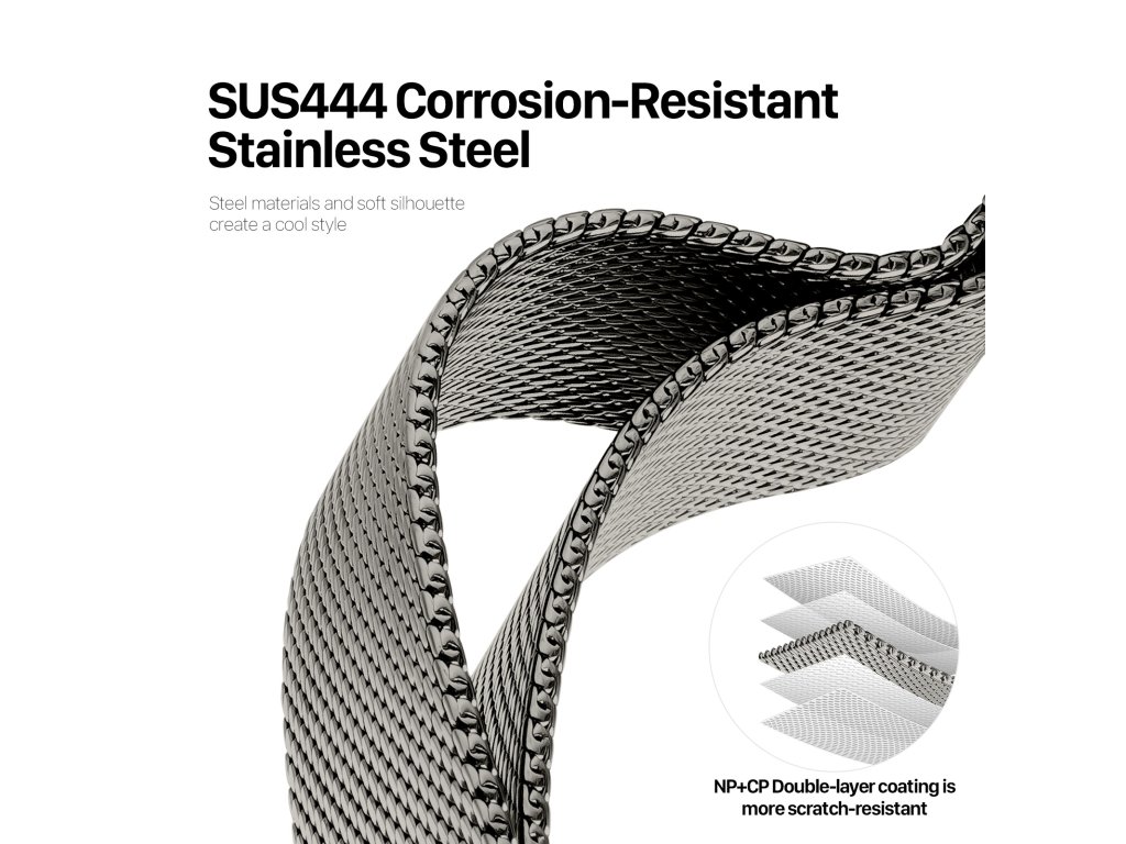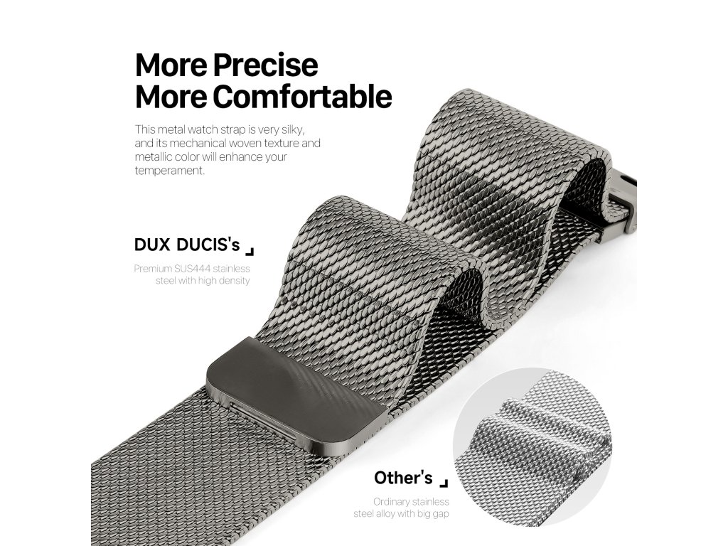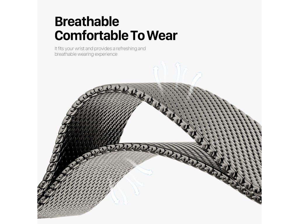 Řemínek na Apple Watch DuxDucis Milanese Pro je vyroben z nerezové oceli a splňuje vše, co má mít kvalitní a elegantní pásek na Apple Watch. Rychle se zapíná magnetem, je prodyšný, ale můžete ho nosit i na ty nejdůležitější jednání a do společnosti.