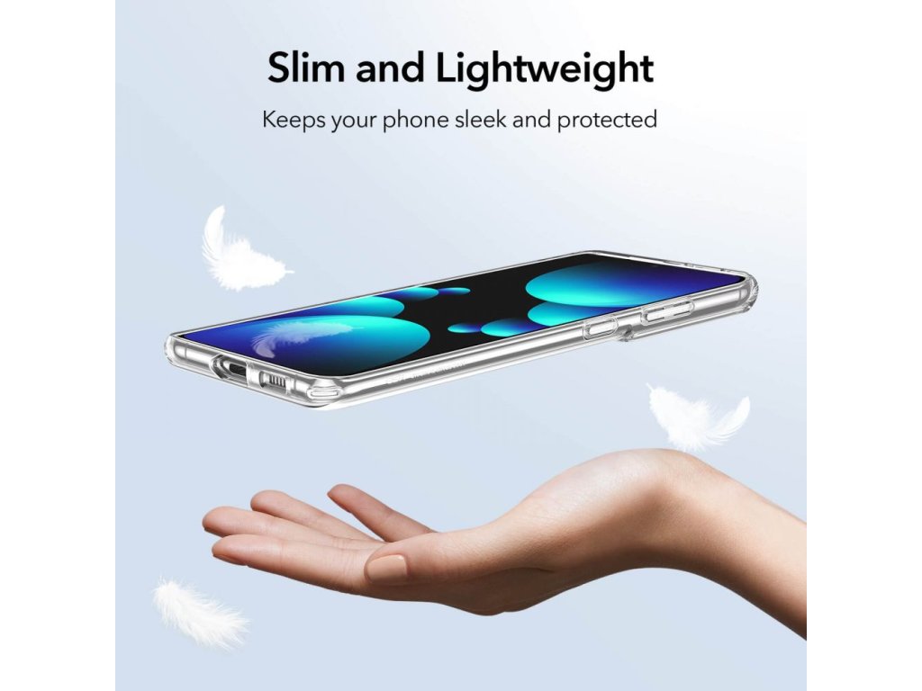 Ochranný kryt pro Samsung GALAXY S21 ESR Project Zero je průhledným krytem, který telefon udrží v bezpečí. Příjemný obal poskytuje ochranu a je velmi tenký, takže ani skoro nepoznáte, že na telefonu je. Kromě zad ochrání i objektivy fotoaparátu a částečně displej.