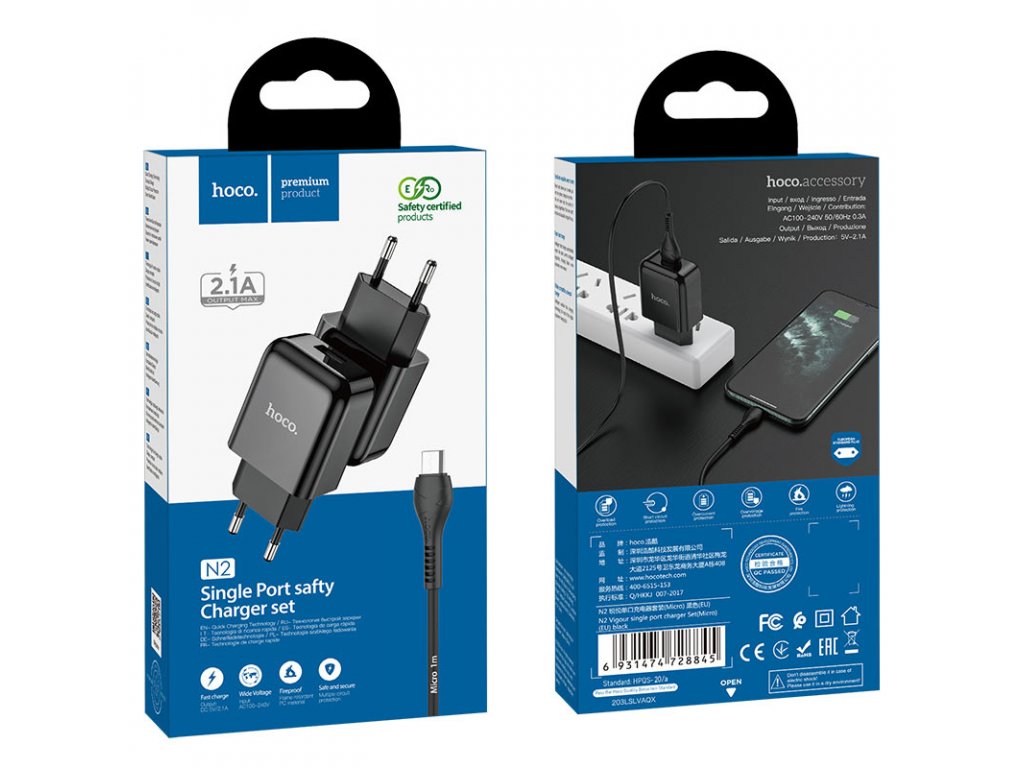 Nabíjecí AC adaptér do sítě - Hoco, N2 Vigour Black + MICRO-USB kabel