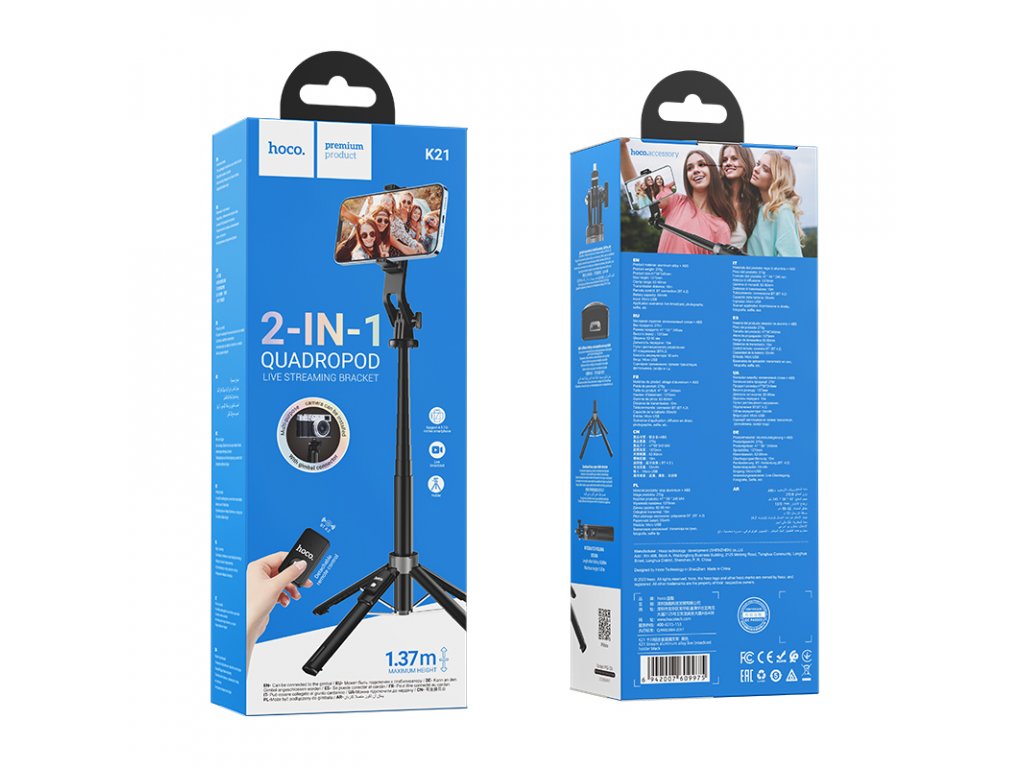 Bluetooth selfie tyč Hoco K21 je bezdrátovou prodlouženou rukou, která vám pomůže vytvořit perfektní selfie. Použít lze i jako stativ pro telefon a v neposlední řadě jde využít i dálkovou spoušť.